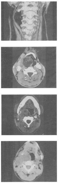 - 单项选择题 男,41岁,右侧咽部不适2年余,有异物感,声音嘶哑,CT如图,最可能的诊断是()。