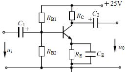 - 简答题 如图所示分压式偏置放大电路中,已知RC=3.3KΩ,RB1=40KΩ,RB2=10KΩ,RE=1.5KΩ,β=70。求静态工作点IBQ、ICQ和UCEQ。