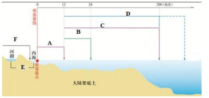 下图是我国主张管辖的海域空间结构示意图。据此回答以下6道题。