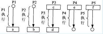 。若用PV操作控制进程P1~P5并发执行的过程,则需要设置6个信号S1、S2、S3、S4、S5和S6,且信号量S1~S6的初值都等于0。下图中a和b处应分别填写(1),c和d处应分别填写(2),e和f处应分别填写(3)。