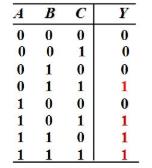 - 简答题请利用与非门设计一个组合逻辑电路供三人表决使用。每人有一个按键,如果赞成就按下按键, 表示1;如果不赞成就不按按键,表示0。表决结果用指示灯来表示,如果多数赞成,则指示灯亮,用1表示;反之则灯灭,用0表示。列出真值表;