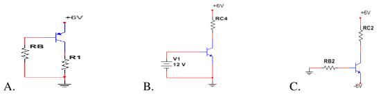 - 单项选择题下面电路为某电路的直流通路,()电路的三极管可能工作在放大状态。