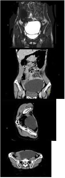 - 单项选择题 女,62岁,左下腹持续性疼痛3天,伴恶心、呕吐,左侧附件区扪及一囊性包块,活动表面光滑,压痛明显,CT和MRI检查如图所示,下列说法错误的是()。