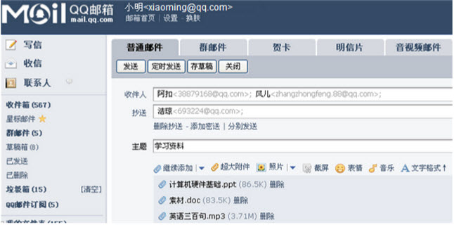 - 单项选择题 某用户要发送一封电子邮件,操作界面如下图所示: