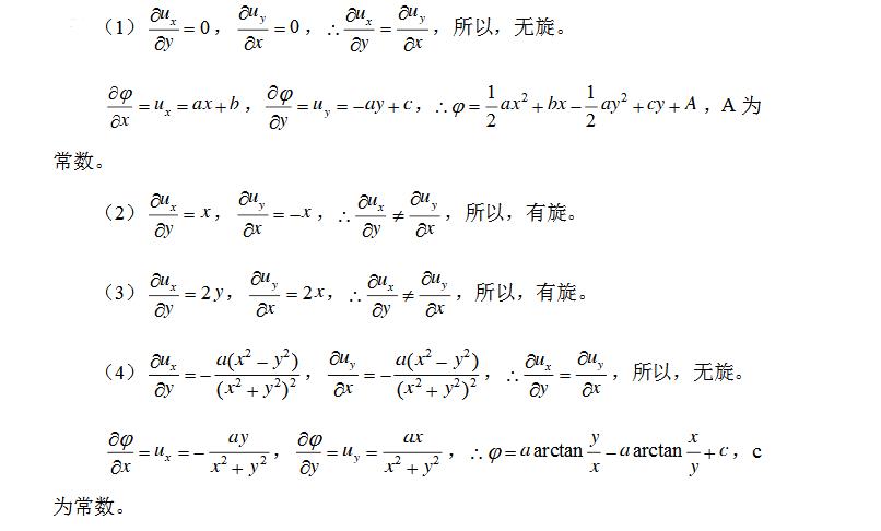 - 简答题如下函数哪些流动是无旋的,求其势函数。