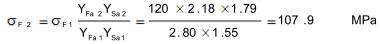 按大小齿轮弯曲应力间的关系式,则大齿轮齿根危险剖面上的弯曲应力为