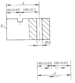 确定封闭环:在零件加工中直接控制的尺寸(40±0.05)mm和A,孔的位置尺寸(100±0.2)mm是间接得到的,故尺寸(100±0.2)mm为封闭环。