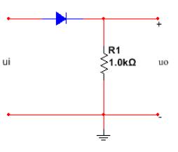 - 简答题假设二极管为理想器件,画出下面电路中与输入波形相对应的输出波形。
