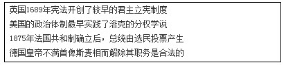 - 单项选择题 某校展开历史研究性学习活动,以下是一位同学针对“近代西方代议制”这一内容自制的一张学习卡片,其中错误的有()