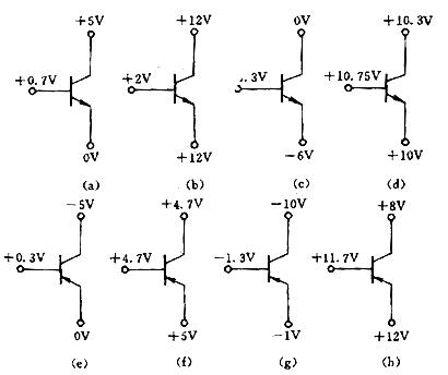 6.UBE=-0.3V,UBC=0V,发射结正偏,集电结零偏,三极管工作在临界饱和区