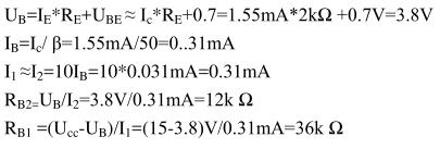 - 简答题在如图的分压式偏置放大电路中,已知Ucc=15V,Rc=3kΩ,Re=2kΩ,Ic=1.55mA,β=50,试估算RB1和RB2.