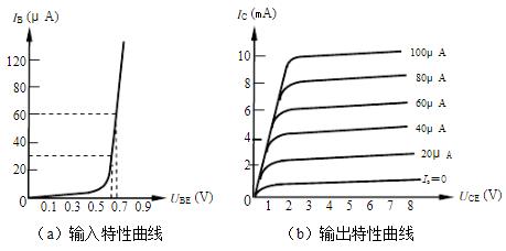(3)由输入特性曲线可知,UBE从0.7V变到0.75V的过程中,ΔIB≈30μA,由输出特性曲线可知,ΔIC≈2.4mA,所以β≈2400/30≈80。