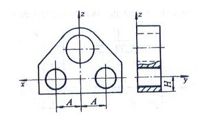 - 简答题 镗两小孔(上方大孔已加工),保证尺寸A和H。指出工件定位应限制的自由度。