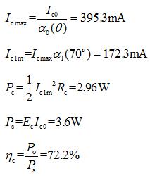 - 简答题 设某谐振功率放大器工作在临界状态,已知电源电压Ec=36V,集电极电流导通角θ=70°,集电极电流的直流分量为100mA,谐振回路的谐振电阻Rc=200Ω,求放大器的输出功率Po,效率ηc?