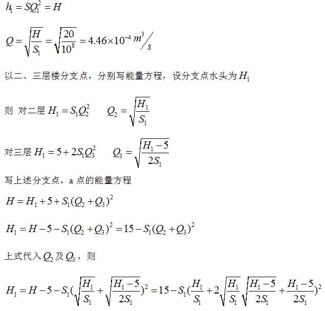 - 简答题 三层供水管路,各管段的S值均为,层高为5m。设a点的压力水头20m,求Q1、Q2、Q3,并比较三流量,得出结论来。