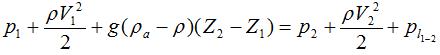 中的ρ1,ρ2分别代表()。 A、1和2断面上的绝对压强