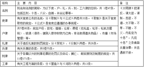 材料一《大明律》是明朝的主要法律,全书30卷460条,分为名例律、吏律、户律等七律,具体内容如下