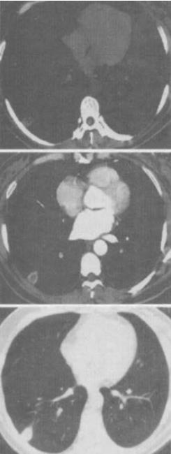 - 患者男,67岁,胸痛、咯血、体重下降,结合CT检查,最可能的诊断