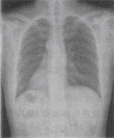 - 单项选择题 24岁女性,无明显症状,检查胸片如图所示。最可能的诊断是()。