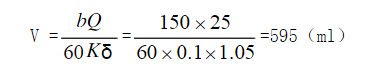 已知Q=25t/h,B=150.0g/h,K=10.0%,δ=1.05t/m3